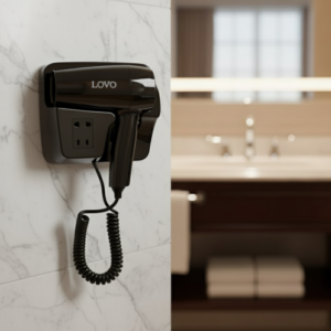 LovoUK Wall Mounted Hair Dryer – 1600W Power, 3 Speed Settings & Dual 220V Shaver Sockets