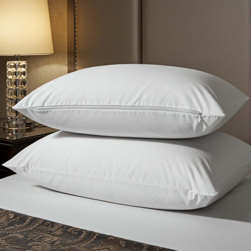 This 60×80 cm pillow protector is made from 100% cotton, making it soft, breathable, and comfortable for daily use. It includes a zipper closure to keep the pillow safely enclosed. The white color gives a clean and fresh look to the bedding. Ideal for hotels or homes that prefer natural fabric. From iLinen, it offers both comfort and protection with an elegant finish.